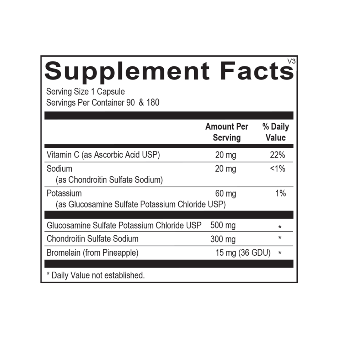 Chondro-Flx combines glucosamine sulfate, chondroitin sulfate, vitamin C and bromelain, all of which have a long history of use and a large body of research highlighting their role in supporting joint health. The formula also includes bromelain to enhance the absorption of chondroitin and vitamin C, an antioxidant that reduces free radicals and is a cofactor to enzymes critical for the synthesis of new collagen.