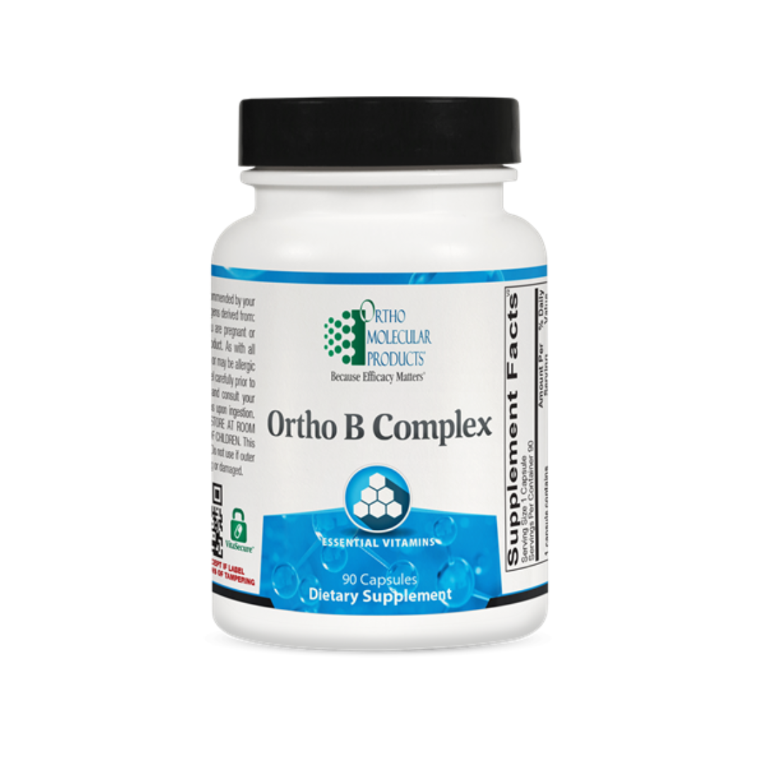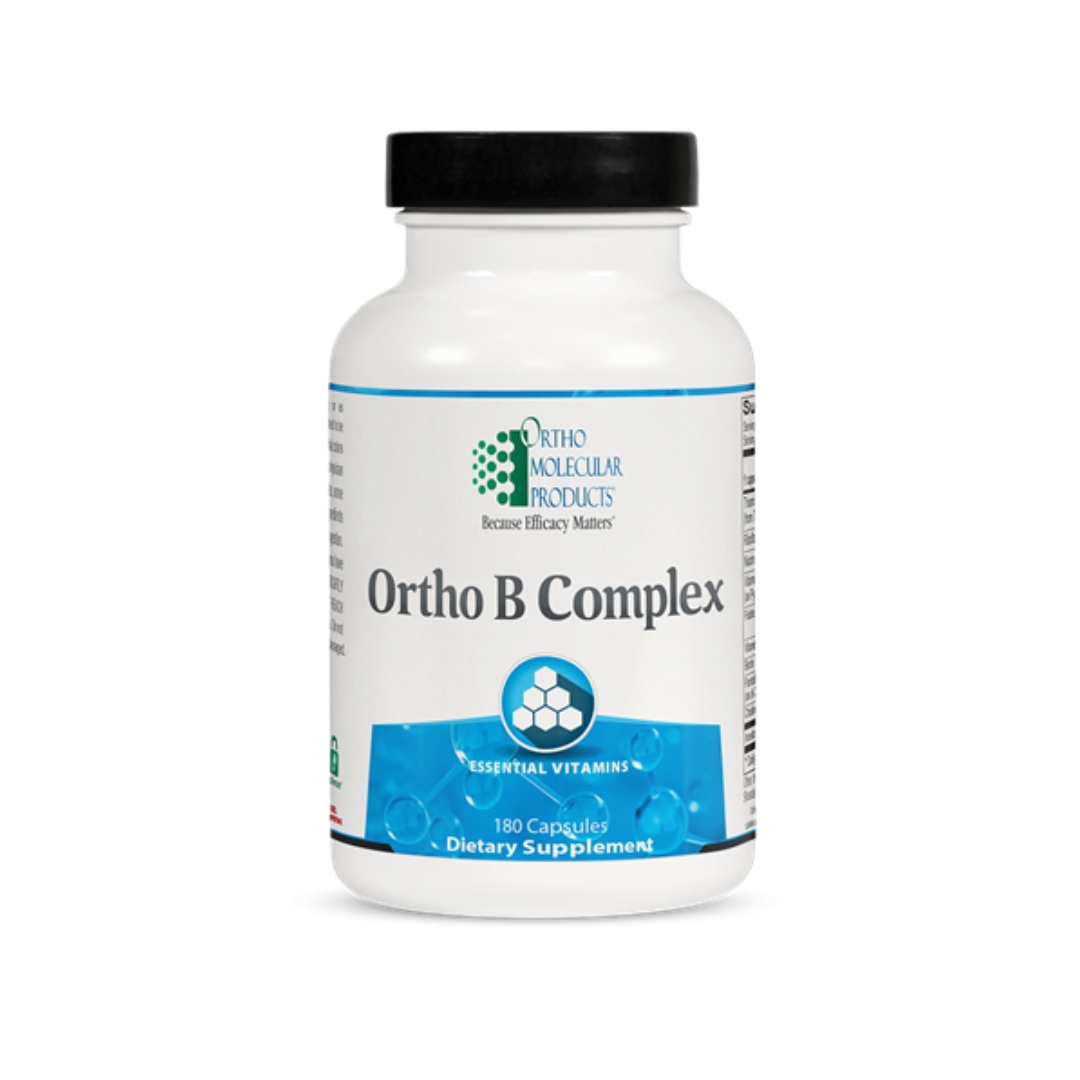 Ortho B Complex is a balanced and comprehensive B complex supplement that contains 5 USP B vitamins, folate, methylcobalamin, and biotin along with choline and inositol. Adequate B vitamin levels are essential for maintaining energy levels and additional intake is often needed by those with high levels of stress. Ortho B Complex offers high-quality nutrients that help to build a healthy micronutrient reserve, including USP* B vitamins to support energy production and folate for optimal methylation.