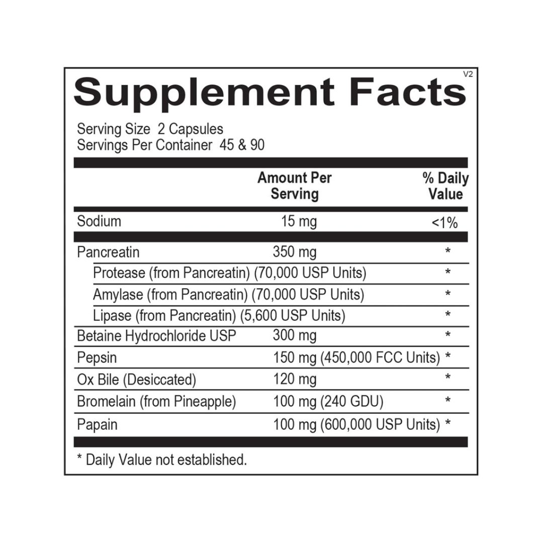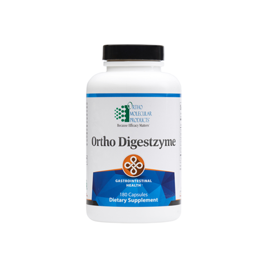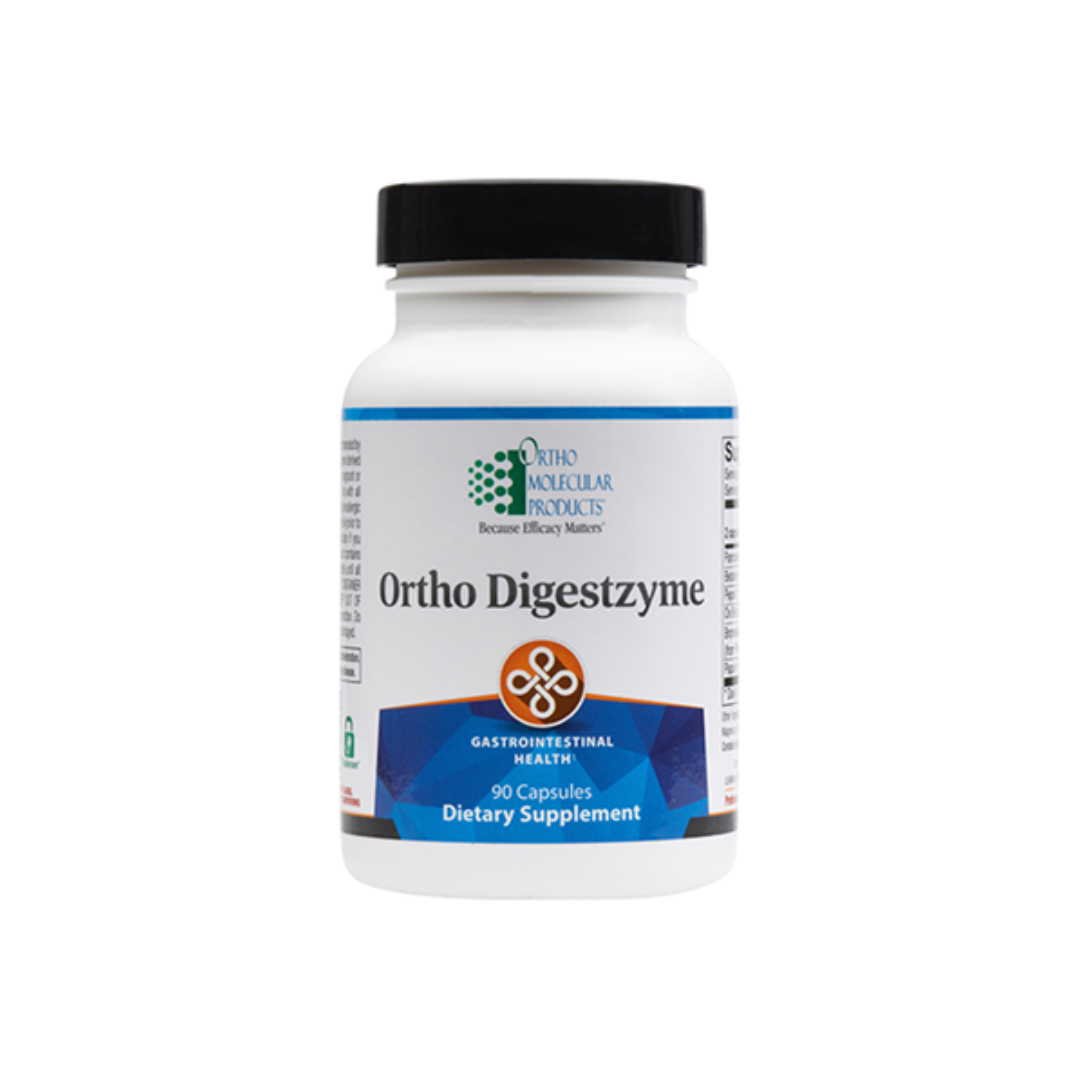 Ortho Digestzyme is a full-spectrum enzyme strategically designed to support each phase of digestion. In the gastric phase, betaine HCl and pepsin prime the stomach, ensuring proper pH to initiate the first phase of digestion. This sets up for the second stage of digestion, the enteric phase, in which high-concentration protease, amylase, lipase, and trypsin are released and activated in the small intestine to ensure proper protein breakdown and fat absorption. This unique blend of high-powered enzymes works to enhance digestion and ensure maximum nutrient intake.