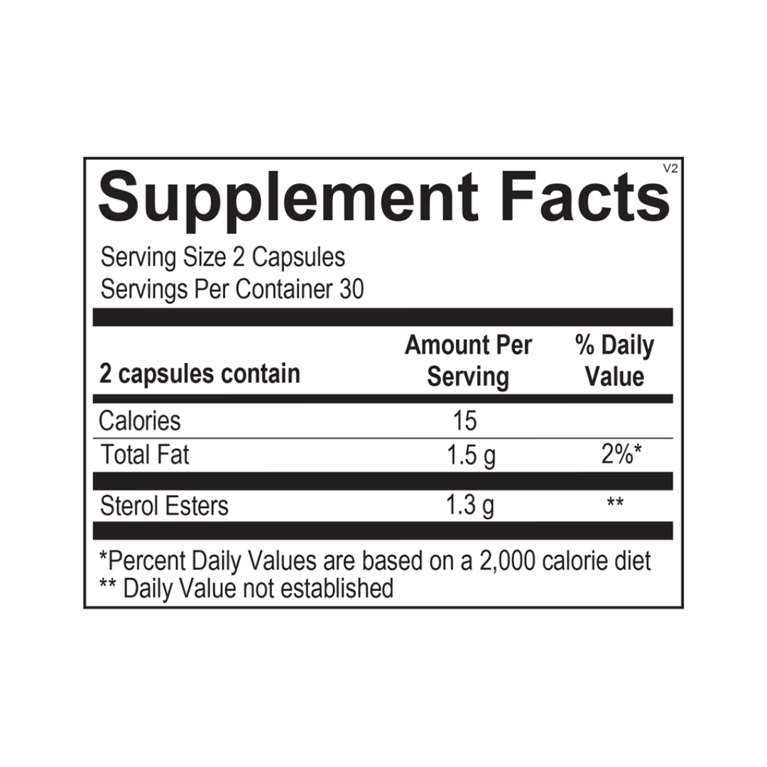 Research has shown that phytosterols, plant-based compounds structurally similar to cholesterol, compete with cholesterol for absorption and thus play a key role in supporting healthy cholesterol levels. According to the FDA, "products containing at least 0.65g per serving of plant sterol esters, taken twice daily with meals for a daily total intake of at least 1.3 g, as part of a diet low in saturated fat and cholesterol, may reduce the risk of heart disease." The National Cholesterol Education Program (NCEP) of the National Heart, Lung and Blood Institute of Health suggest the use of plant sterols to promote cardiovascular health. The Plant Sterols formula includes a variety of purified plant sterols: campesterol, stigmasterol, b-sitosterol, and other cholesterol-like compounds. Two capsules provide the recommended 1.3 g of plant sterol esters for maximum cardiovascular benefits.
