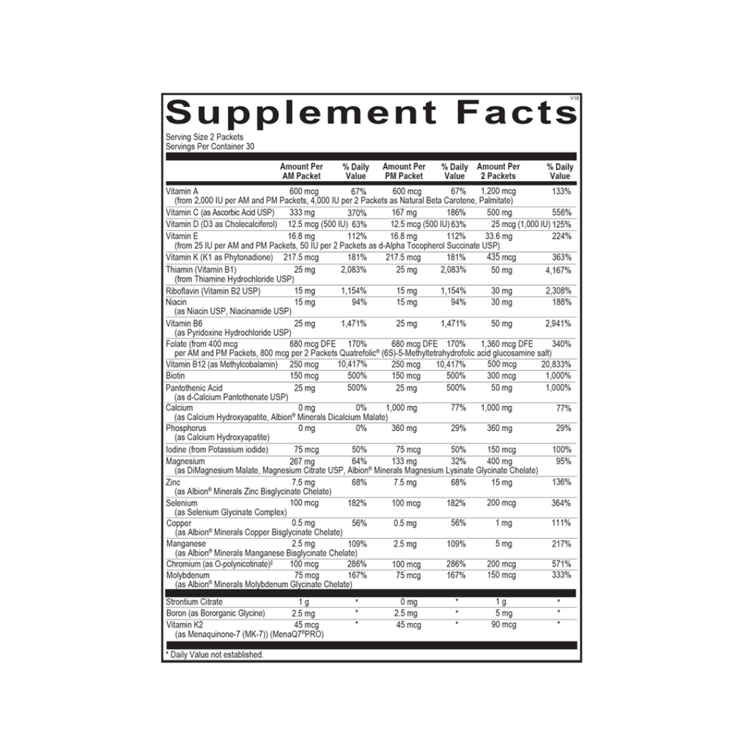 2 packets per day, one AM packet in the morning and one PM packet in the evening or as recommended by your health care professional.