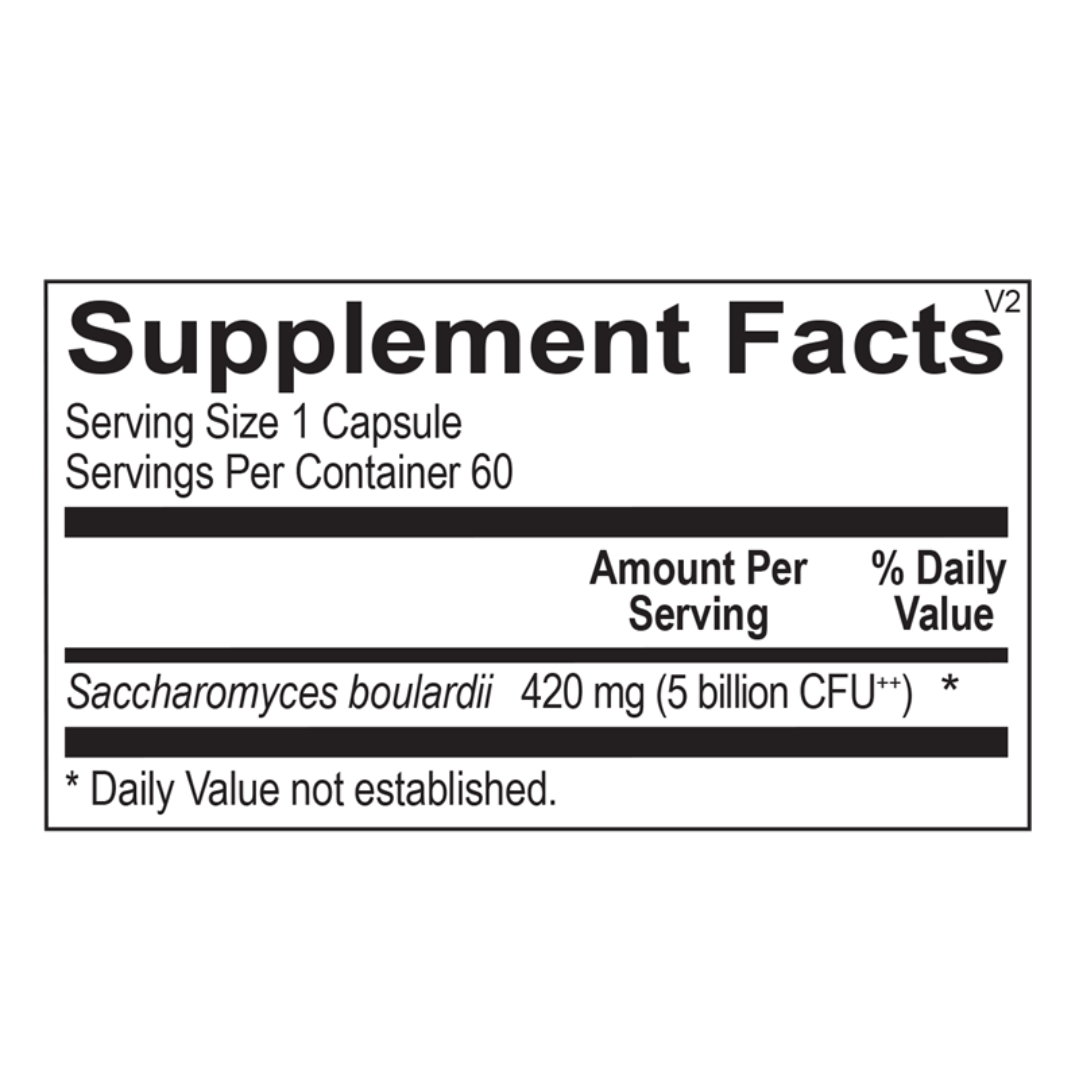 To be an effective probiotic, microorganisms must have certain qualities to withstand the natural defense factors of the host. This includes resistance to gastrointestinal transit and the ability to thrive at human core temperatures. This formulation of Saccharomyces boulardii is a stomach acid-resistant probiotic, proven to survive high temperatures and transit into the intestines. The formula is freeze-dried, lactose-free and strain-verified through genetic typing to ensure maximum efficacy.